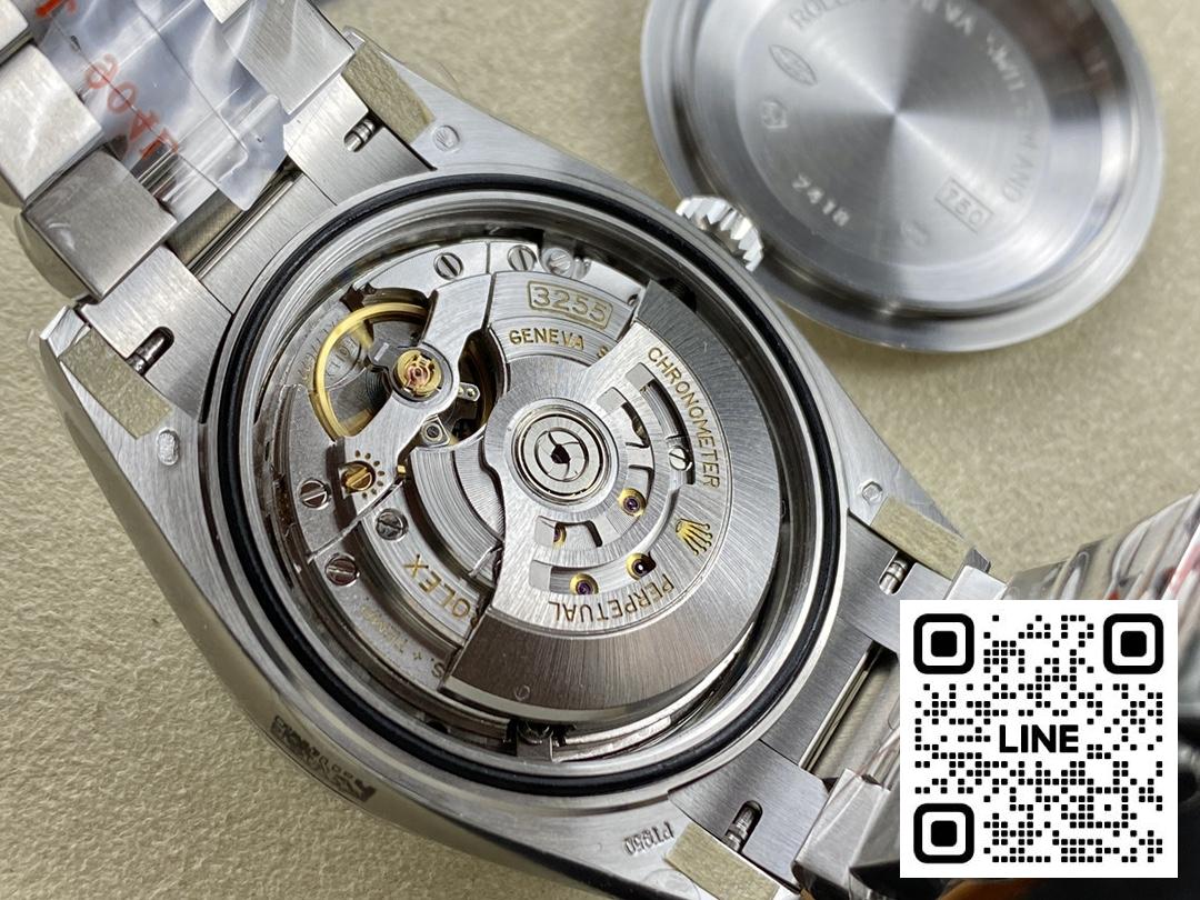 ARF工場から、ロレックス デイデイト40mmのアップグレード版が登場しました。Cal.3255一体型自動巻きムーブメントを採用し、一般的なETA 2834ムーブメントとは異なる点が大きな特徴です。ケース厚は12.2mmで正規品と同等です。ダイヤルのバー/ダイヤ/ローマ数字インデックスのプロポーション、針の曲率とバリ取り、ブレスレットリンクの寸法まで、細部を徹底的に見直しています。 外装色は電気メッキによる標準色(1N16/2N18)に頼らず、正規品に合わせて専用調色を実施しました。褪色対策としてナノ保護コーティングを後加工し、色調の持続性を強化しました。ケース裏四隅の貴金属ホールマークは、視認しやすいレーザー刻印ではなく、プレス成形+エッチングで質感を高め、正規品に近い仕上がりにしています。