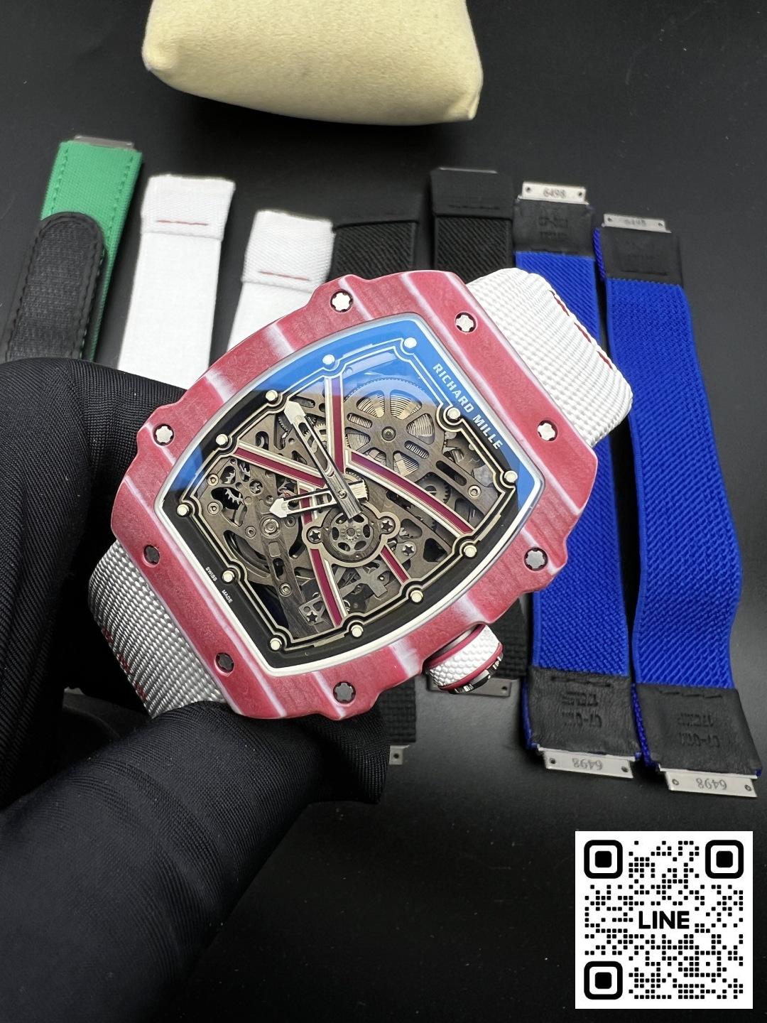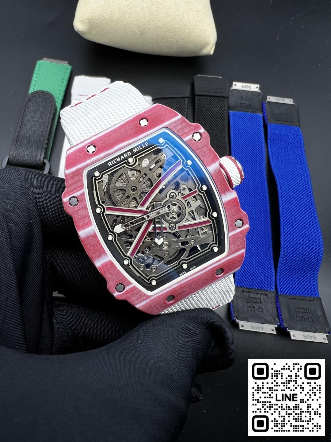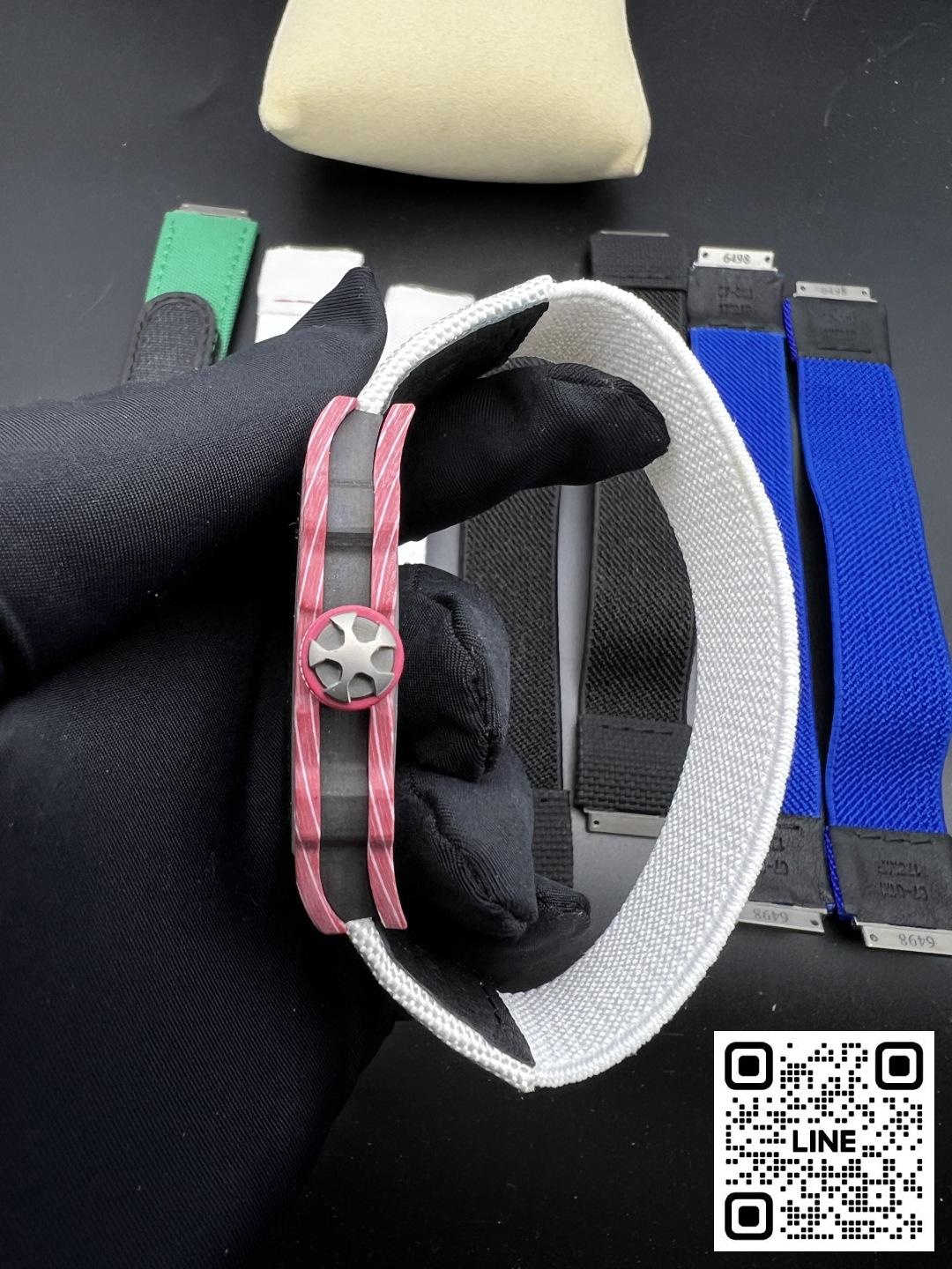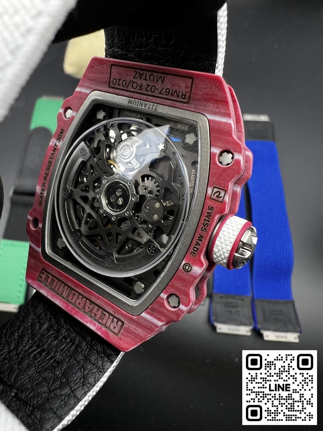 軽さと薄さ、そして人間工学の面から、RM 67-01は、スポーツウォッチのベースモデルとして理想的でした。ウォッチラインに改良を加えてアスリートに合わせた様々な特色を強調しました。ベゼルとケースの4つのエクステンションを持つ設計は、リシャール・ミルのスポーツウォッチを象徴するだけでなく、ケース構造の強化にも役立っています。