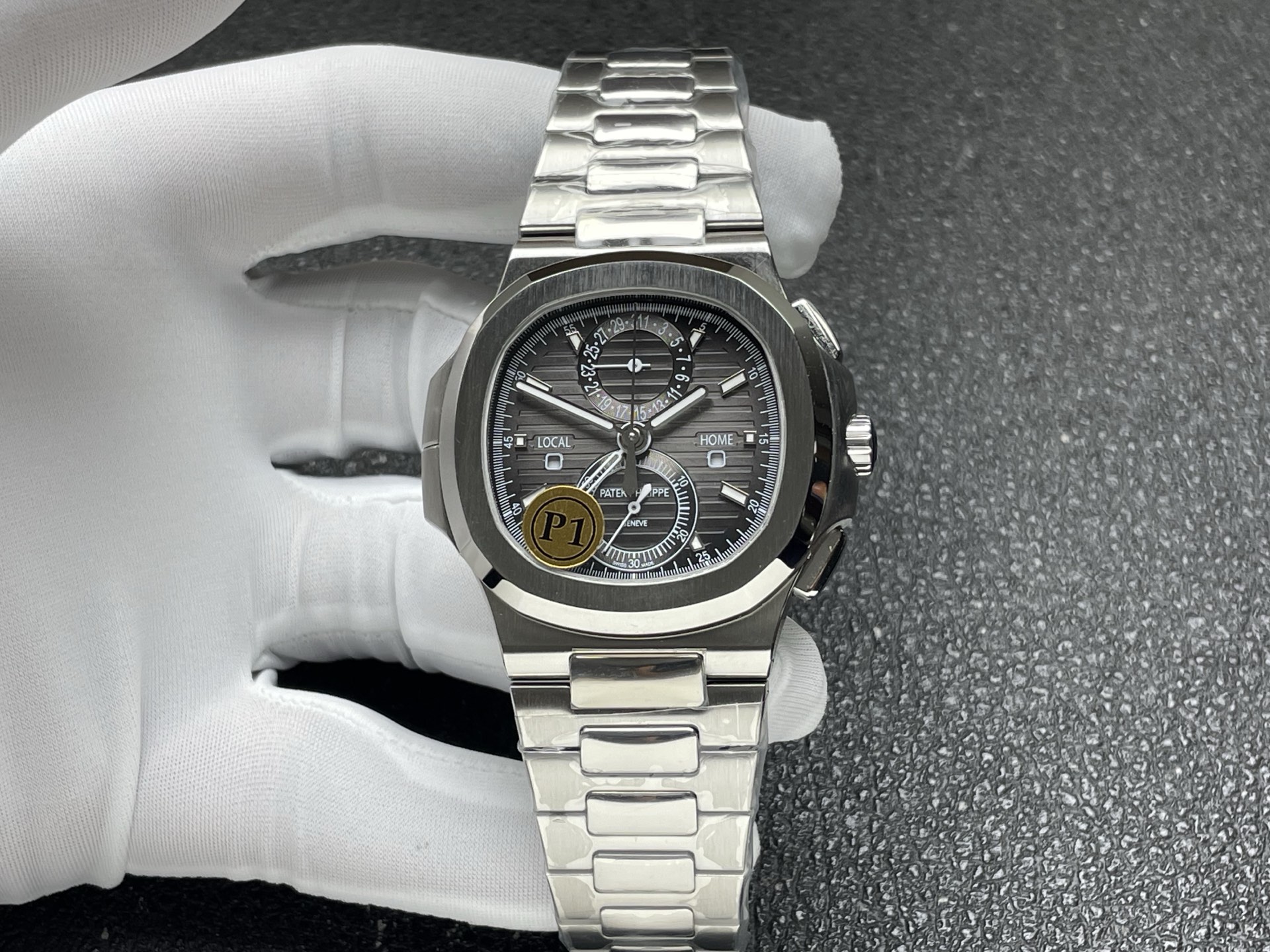 P1工場の5990モデルの機能は本物と同じで、デュアル・タイムゾーン機能の使用できる。日付の調整とブレスレットの微調整の方法も本物の調整方法と一致してる。