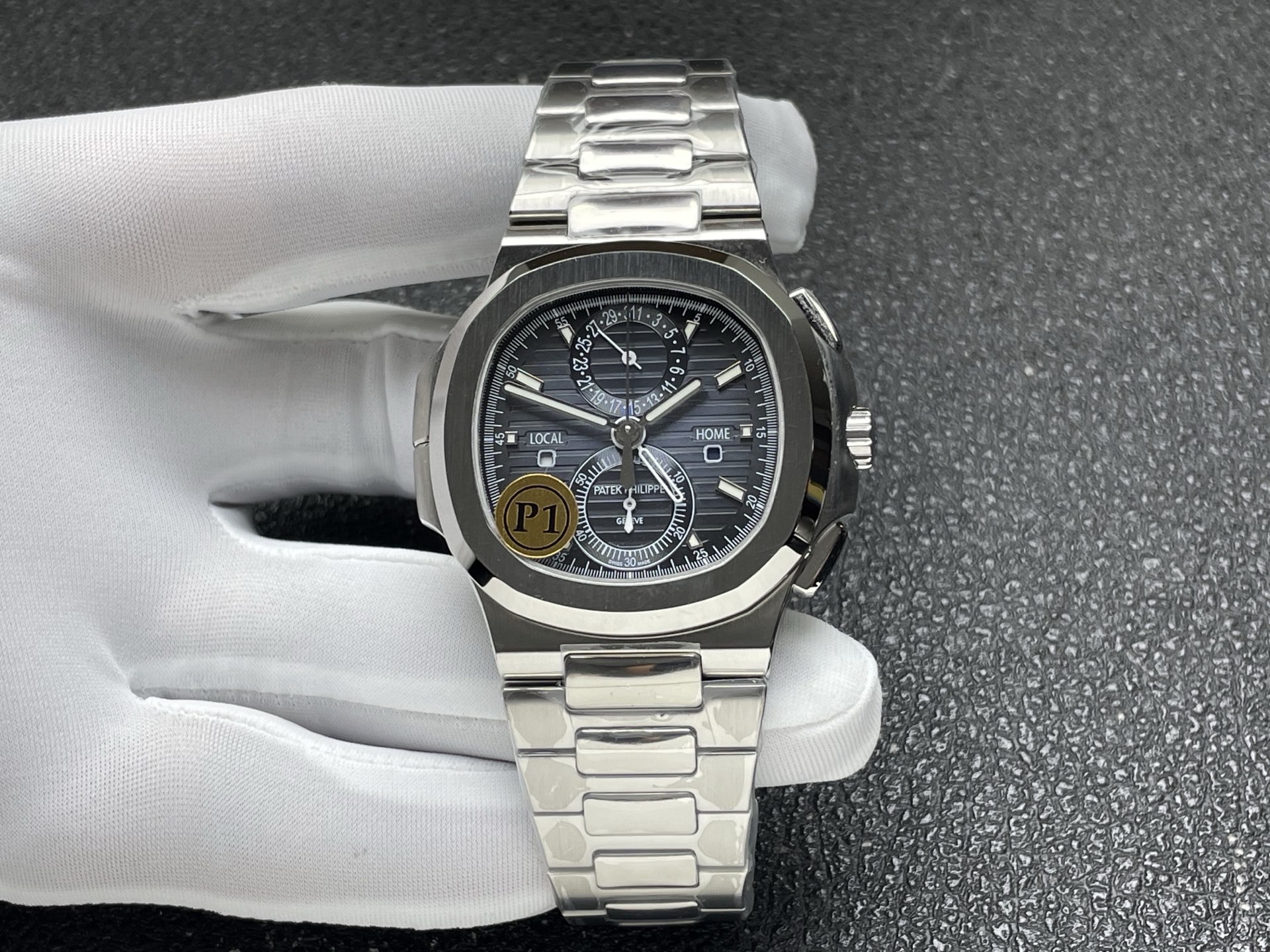 P1工場の5990モデルの機能は本物と同じで、デュアル・タイムゾーン機能の使用できる。日付の調整とブレスレットの微調整の方法も本物の調整方法と一致してる。
