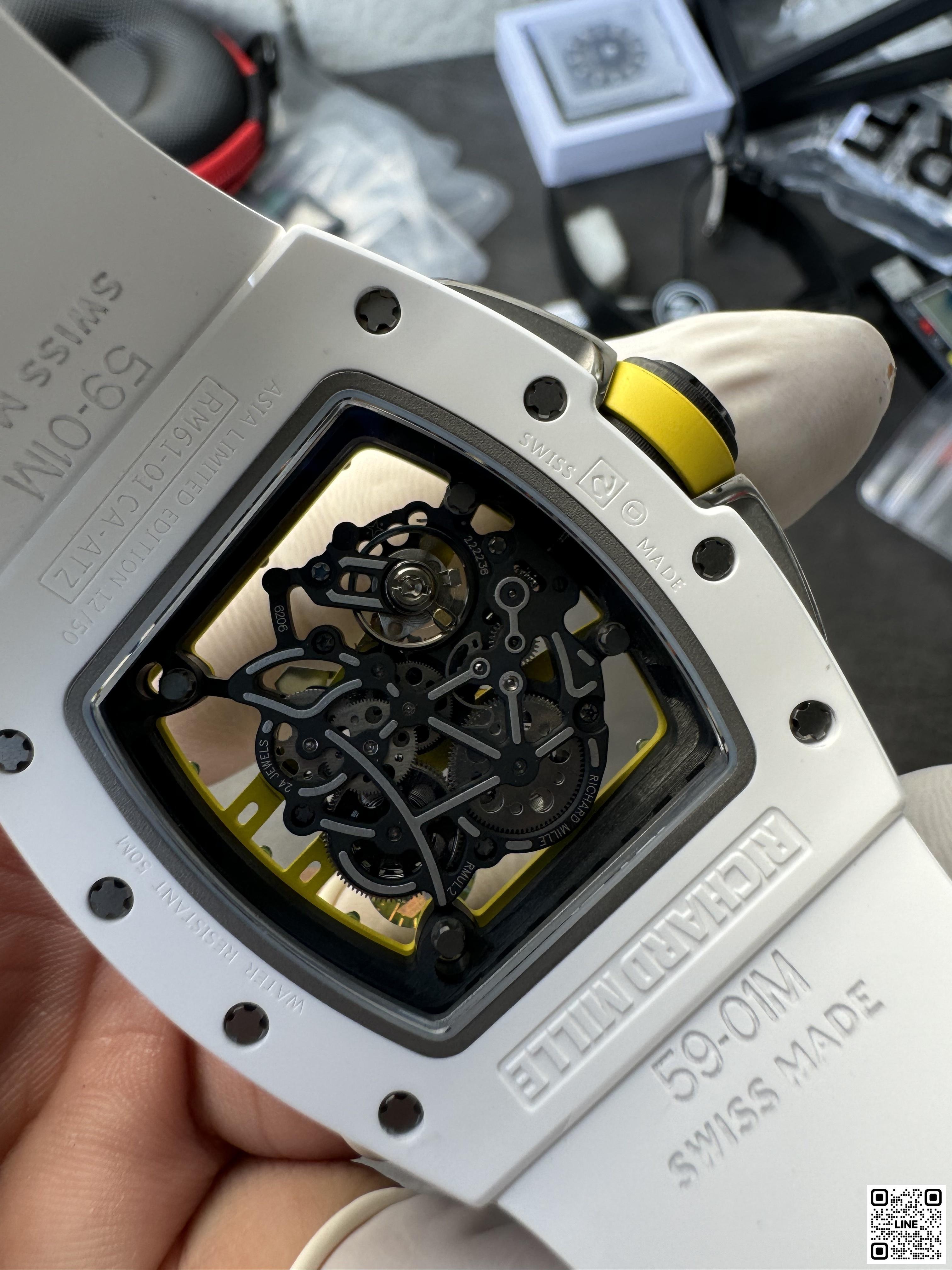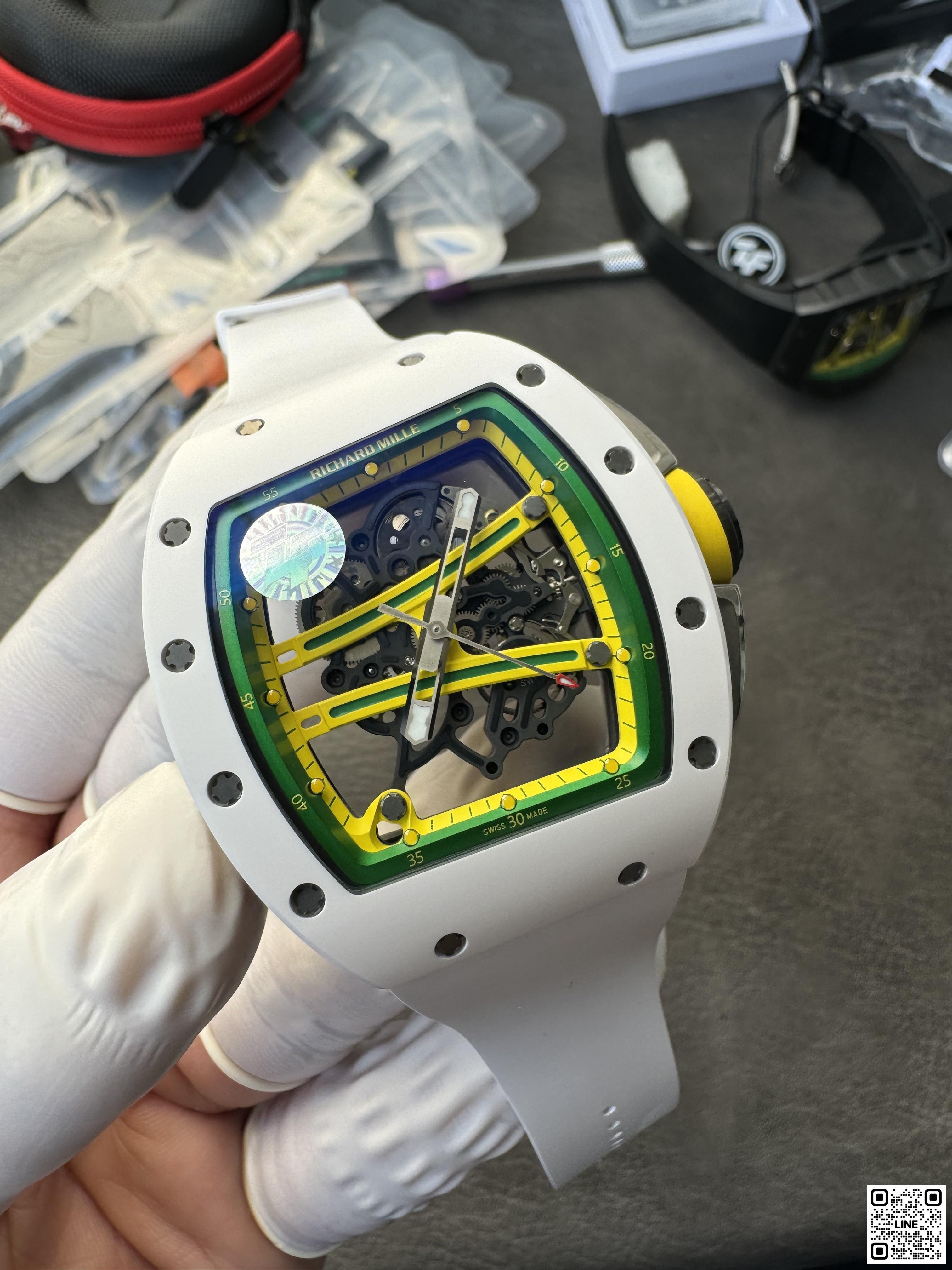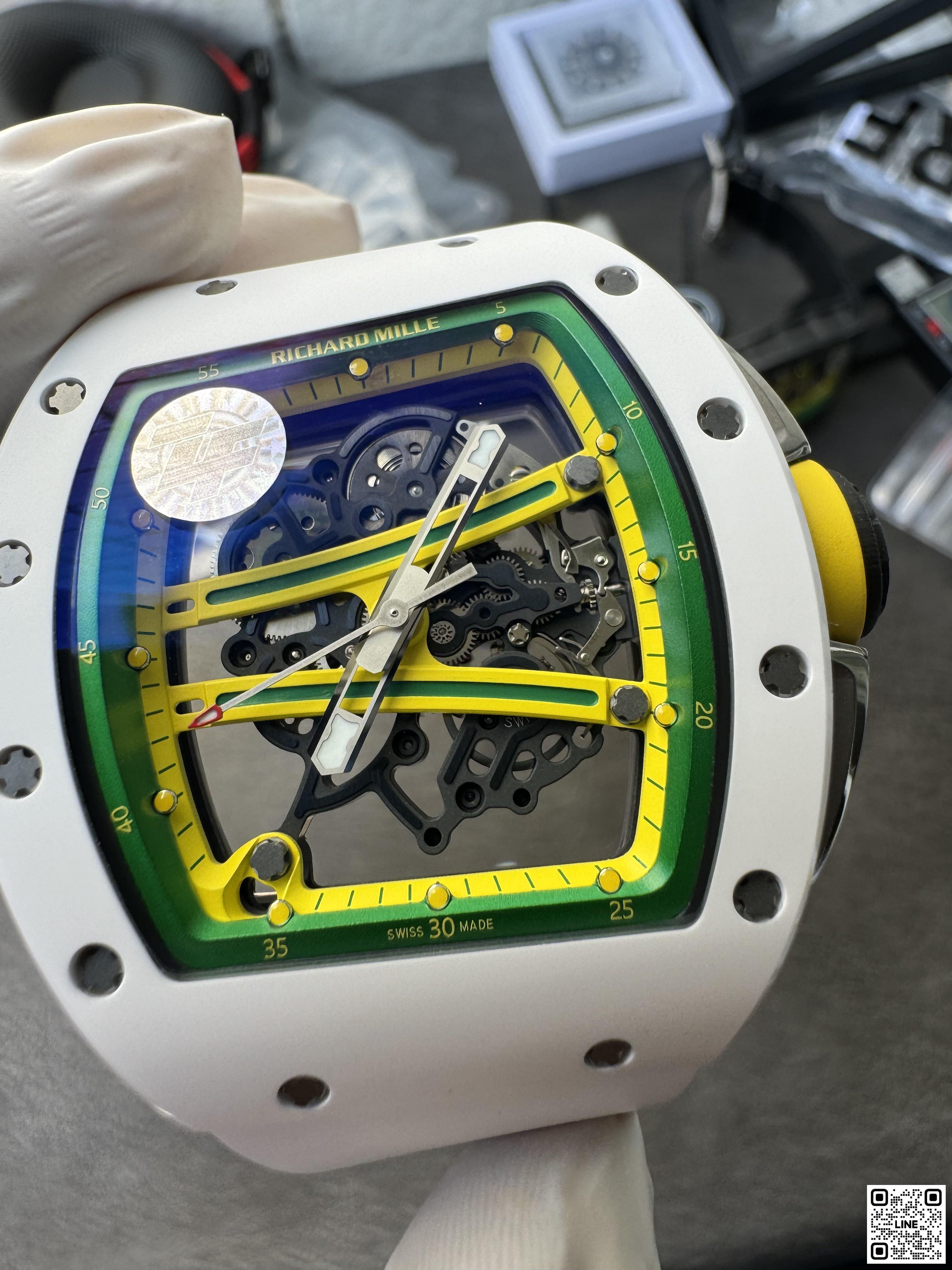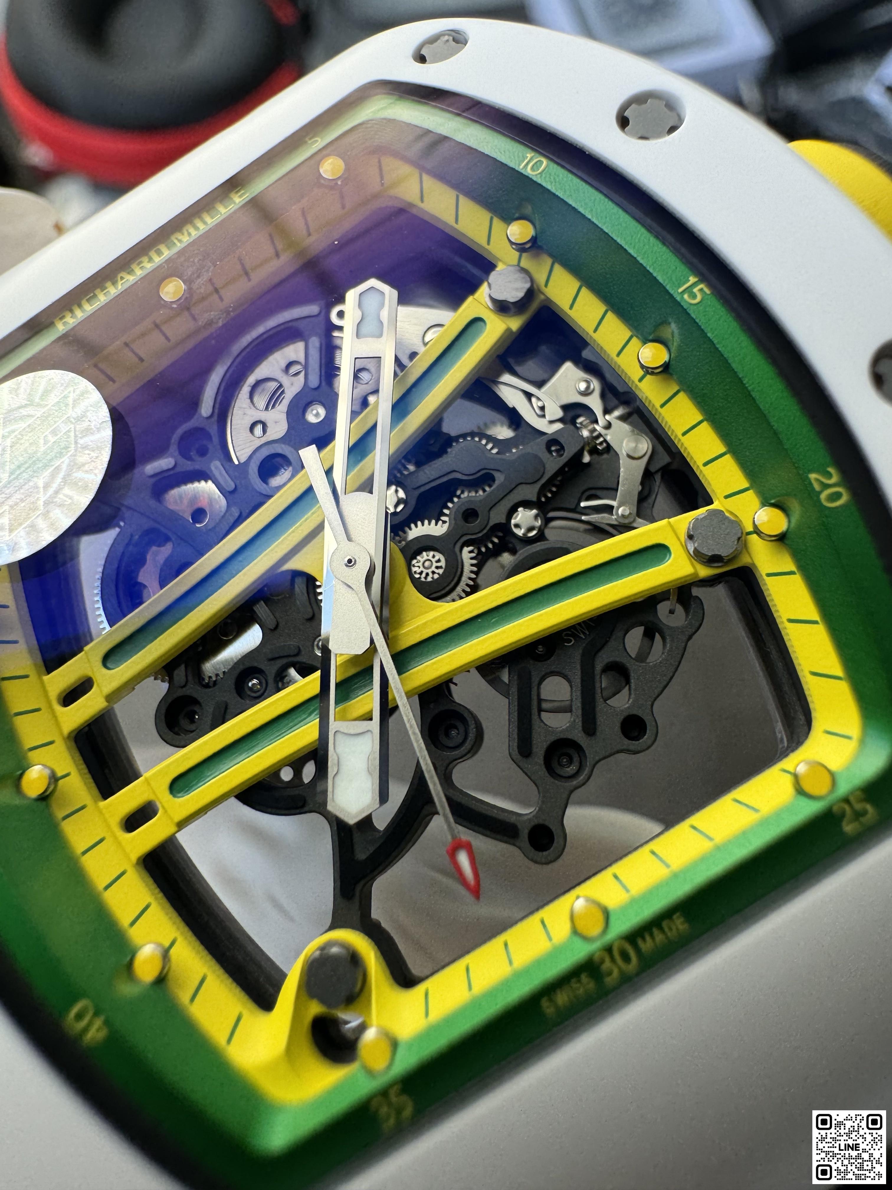 RM 61-01 ヨハン・ブレイクは、100mと200m短距離走において世界第2位の記録を持つオリンピックメダリストのためにデザインされたRM 59-01 トゥールビヨンからすべてのヒントを得ています。キャリバー RMUL2を搭載し、最大限のパフォーマンスを提供しています。