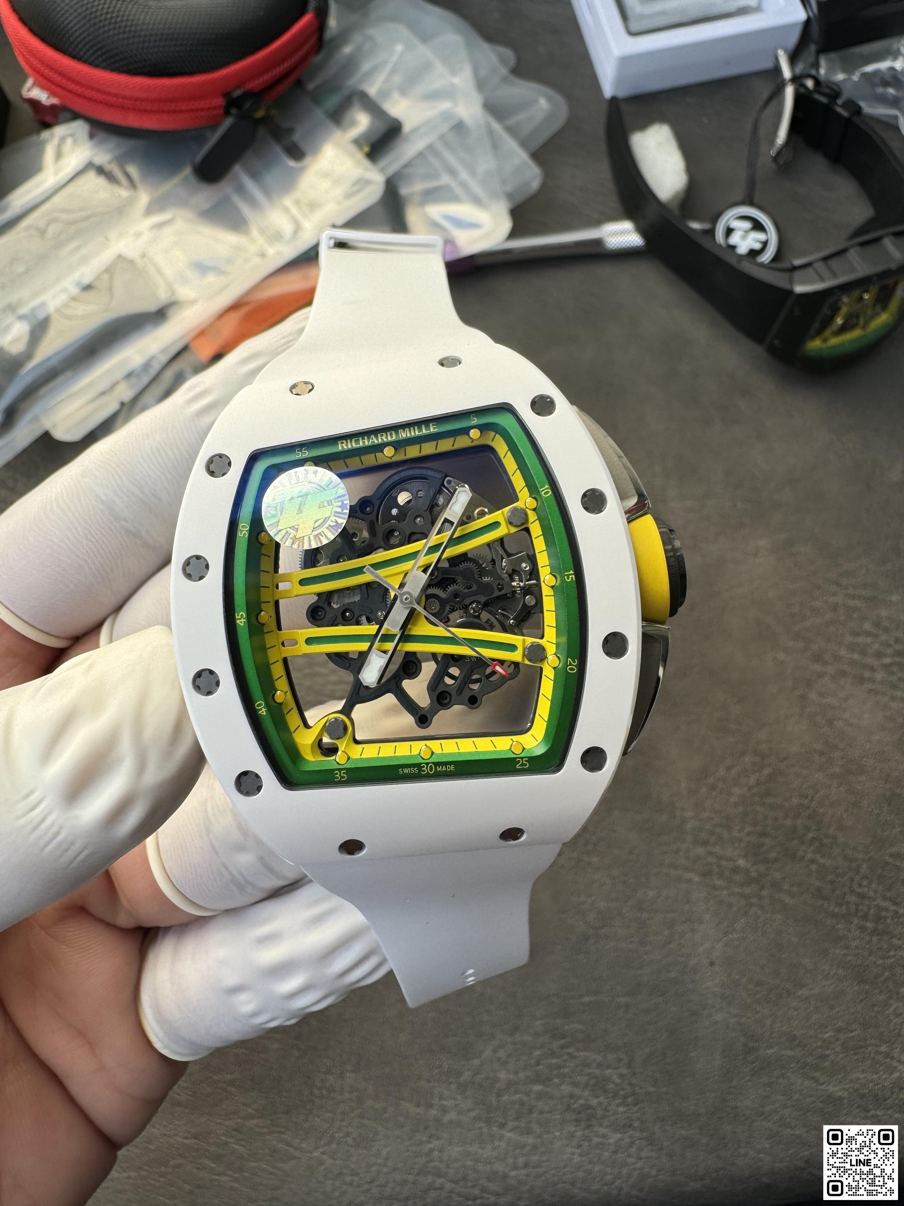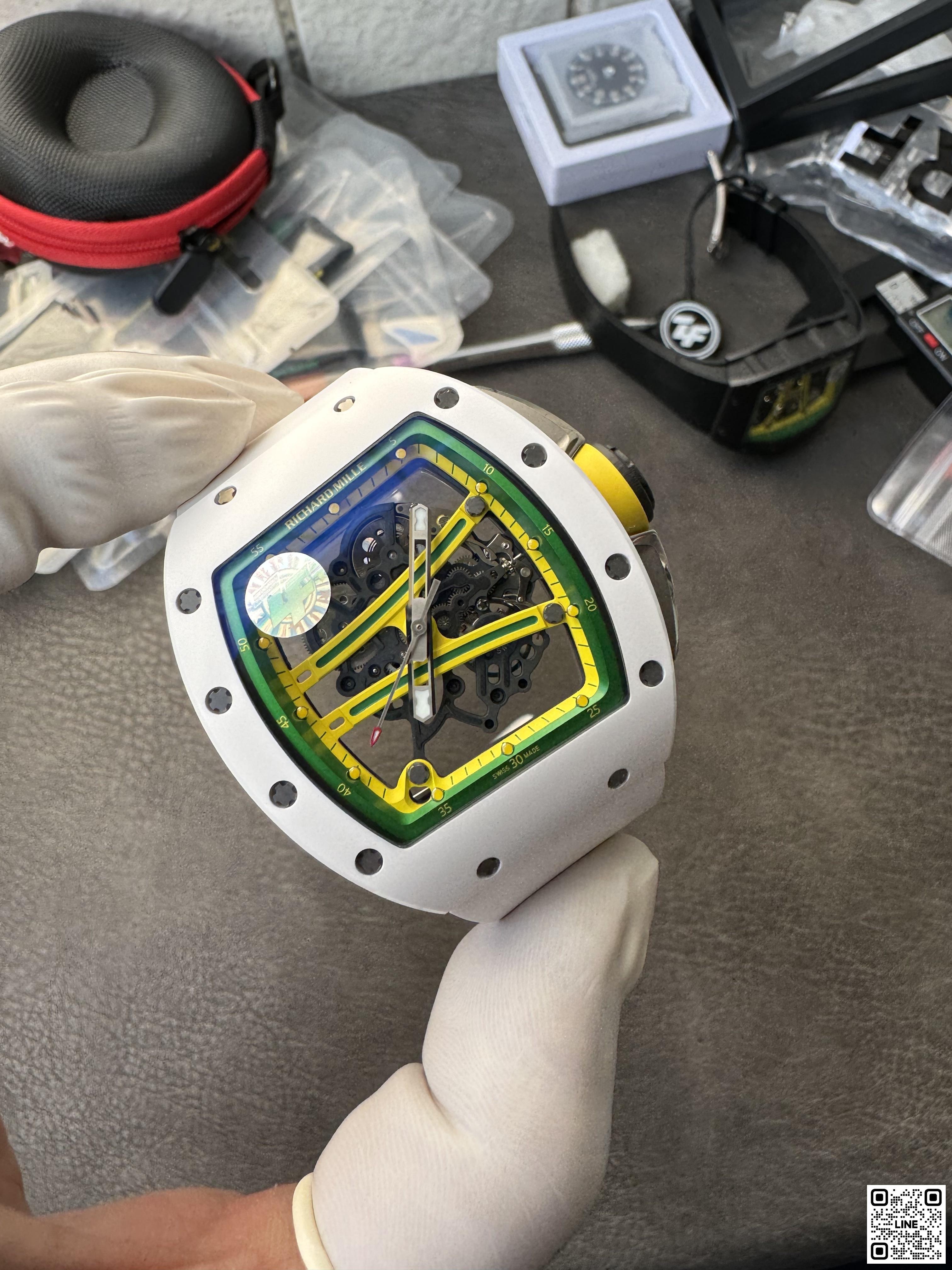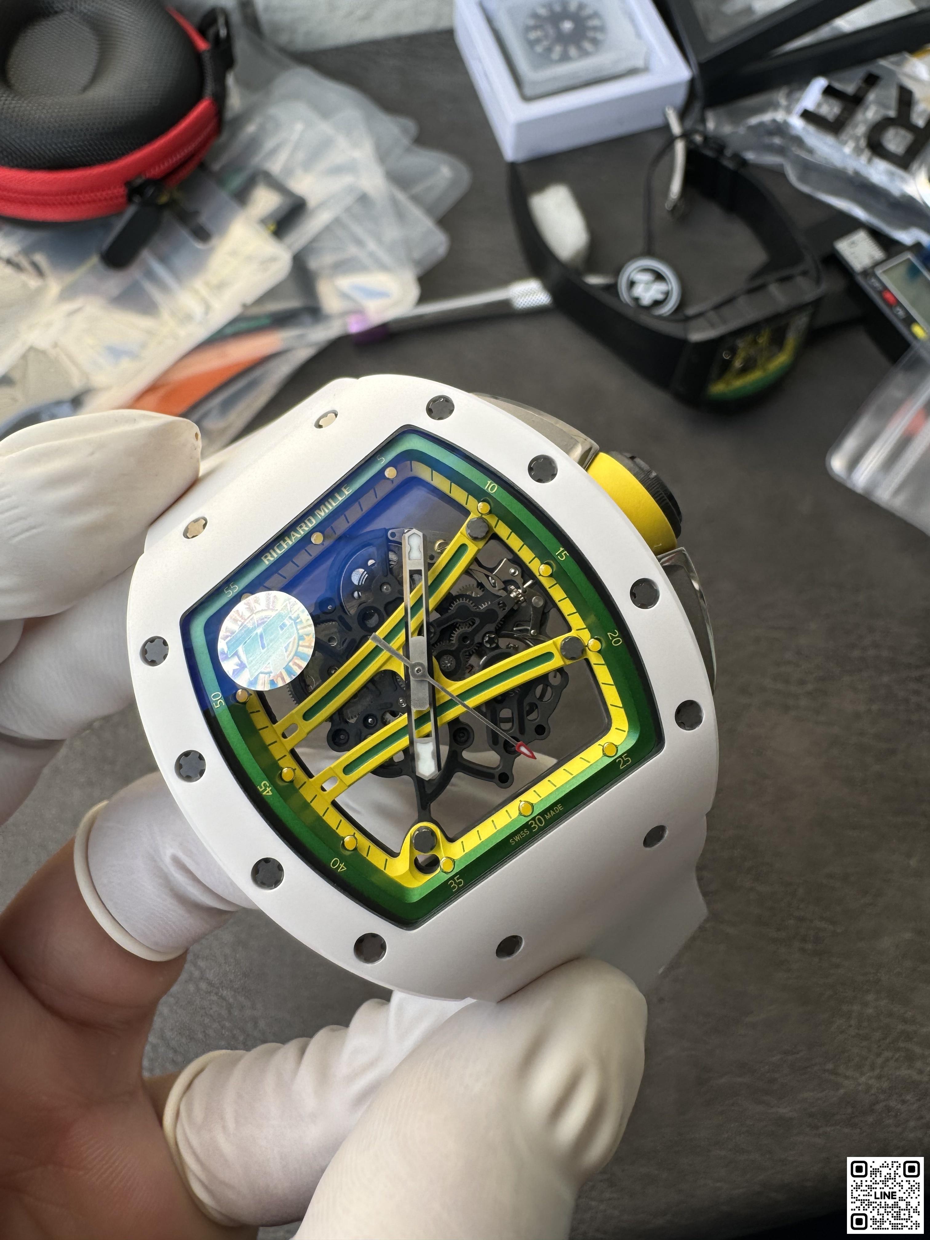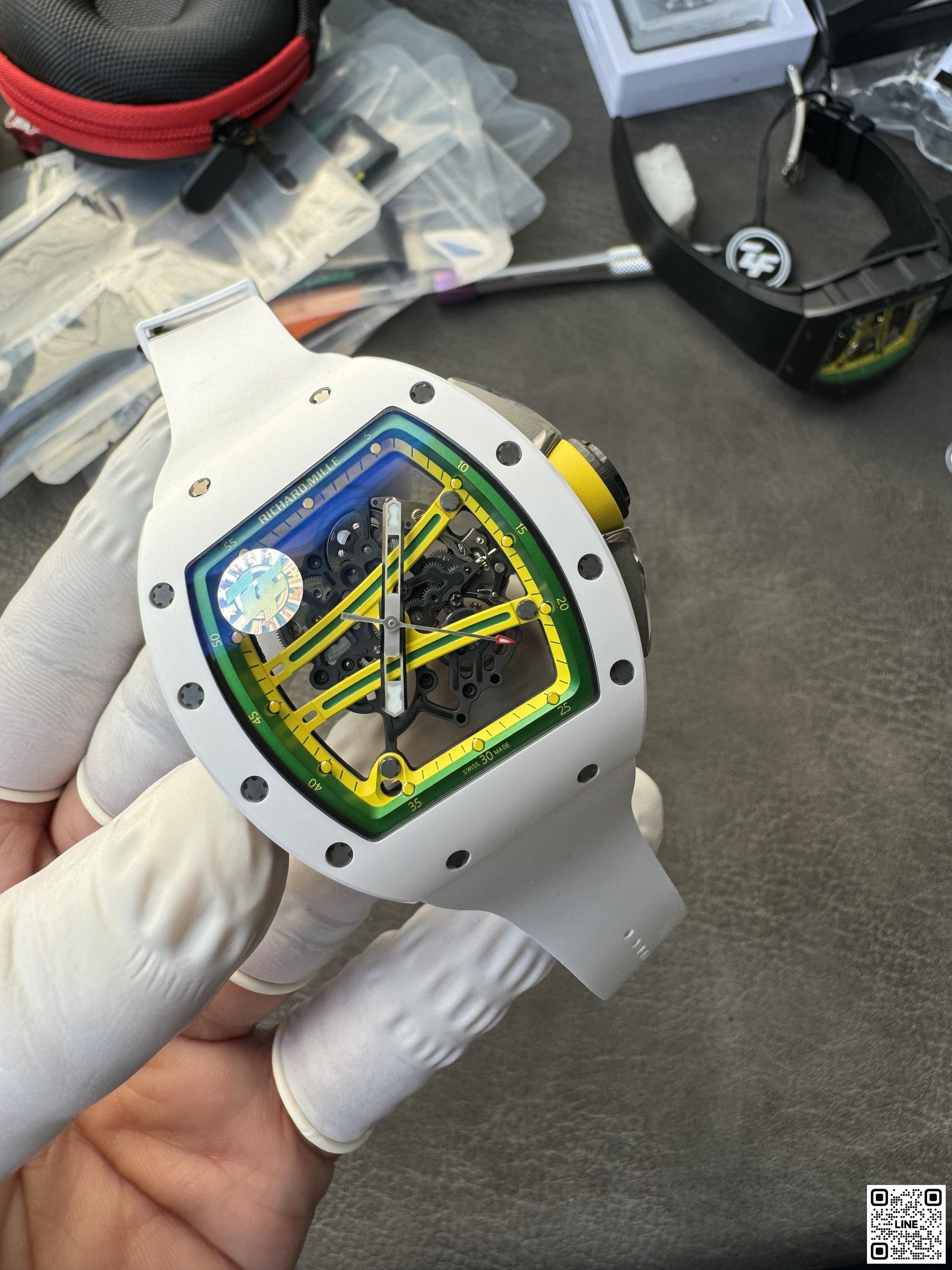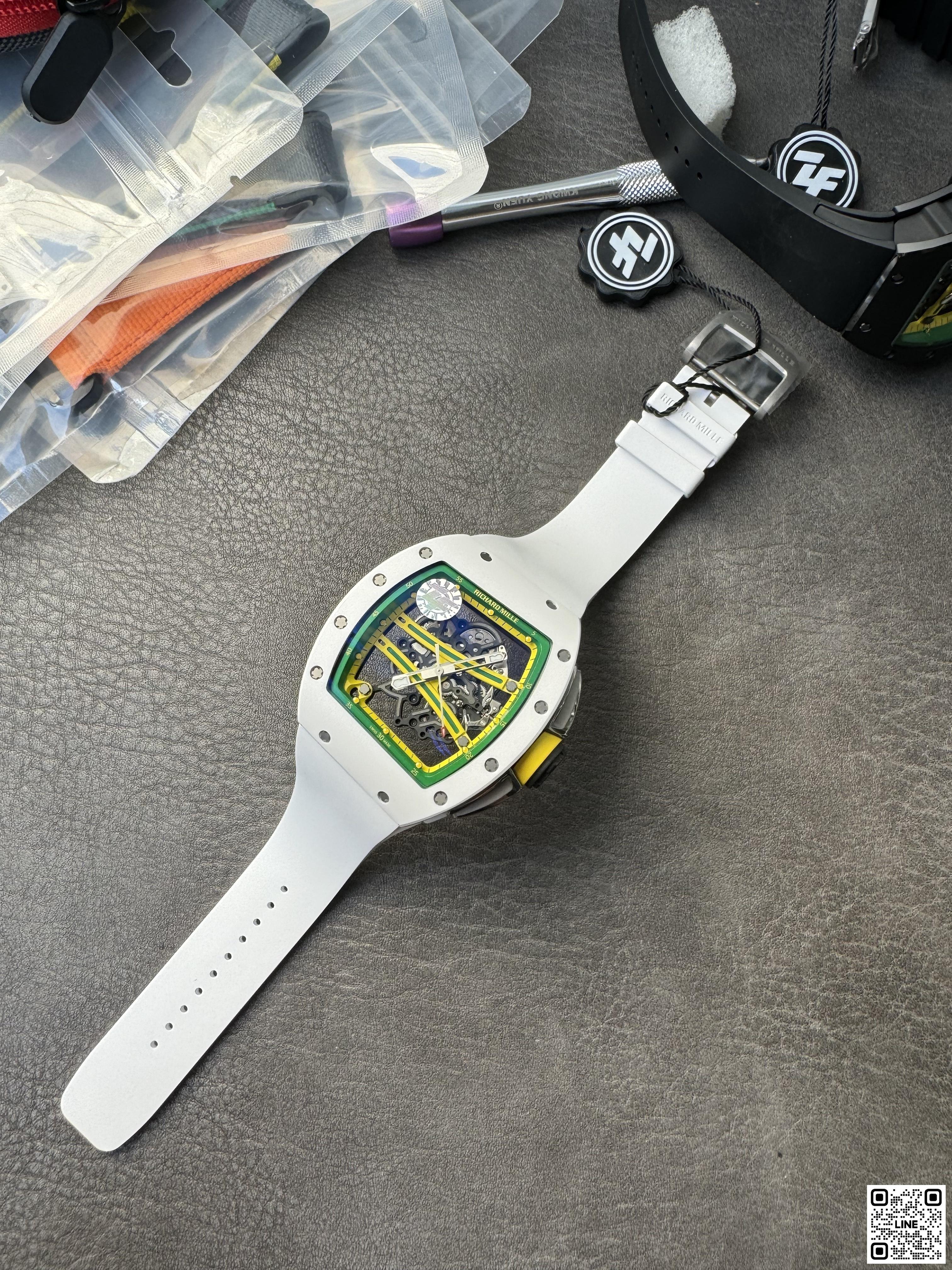 RM 61-01 ヨハン・ブレイクは、100mと200m短距離走において世界第2位の記録を持つオリンピックメダリストのためにデザインされたRM 59-01 トゥールビヨンからすべてのヒントを得ています。キャリバー RMUL2を搭載し、最大限のパフォーマンスを提供しています。