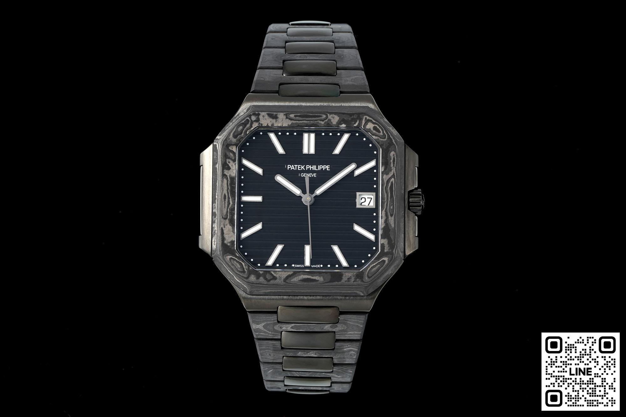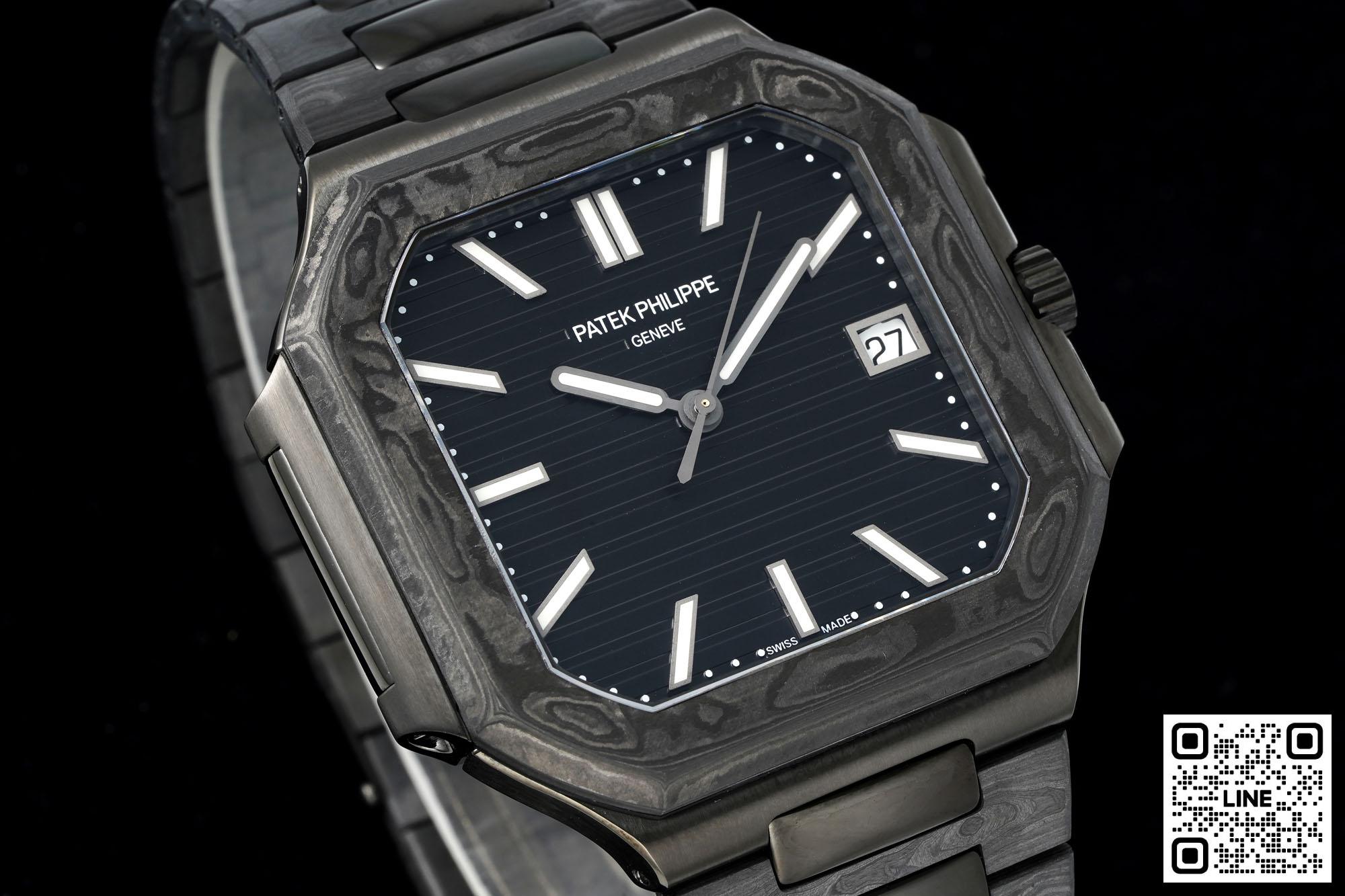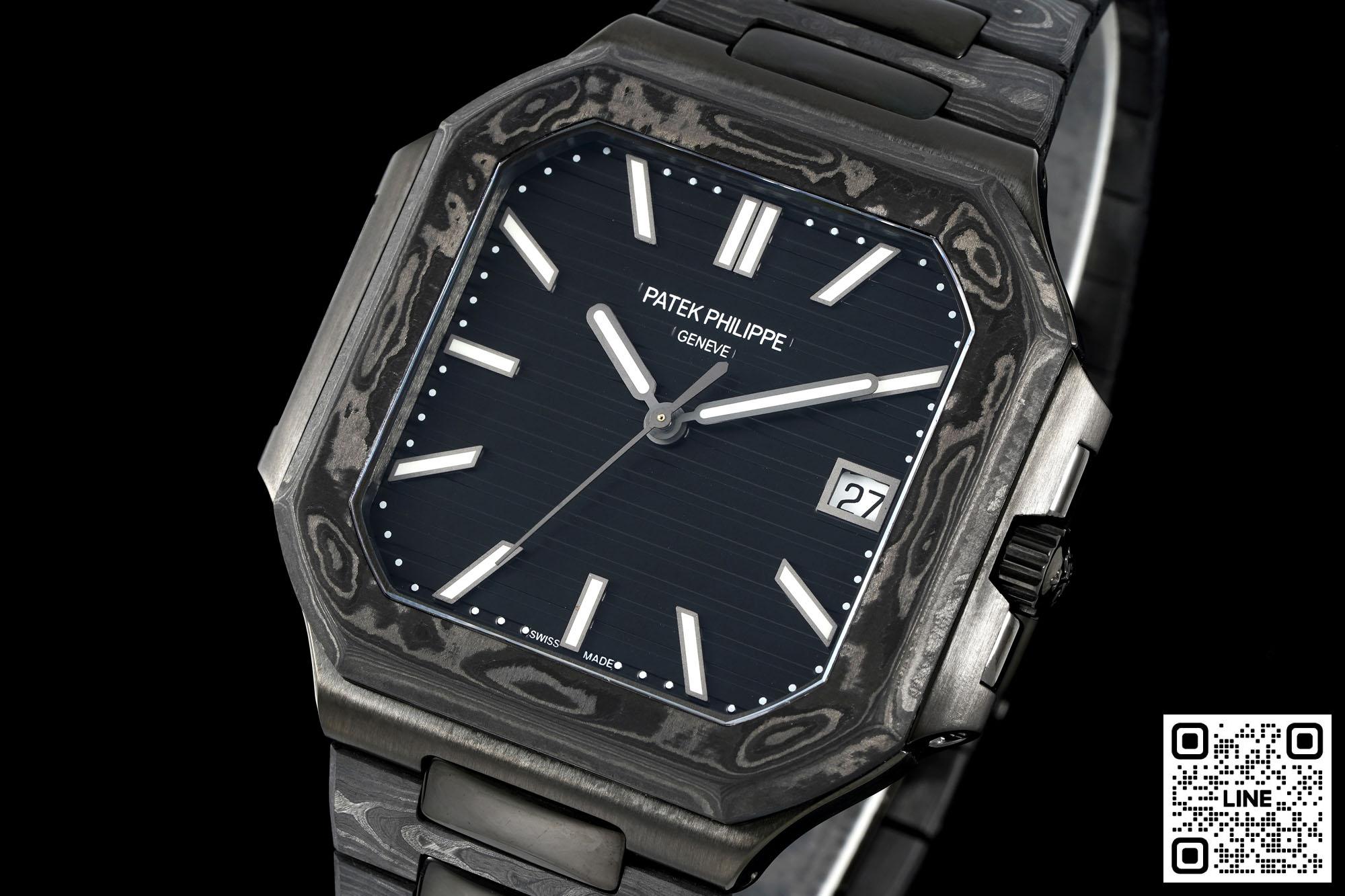 パテック フィリップは、新しいCubitus(キュビタス)コレクションのエレガントで大胆なデザインを強調し、ポリッシュ仕上げと縦サテン仕上げを交互に施した、DIWがNTPTカーボンバージョンを創作しました。