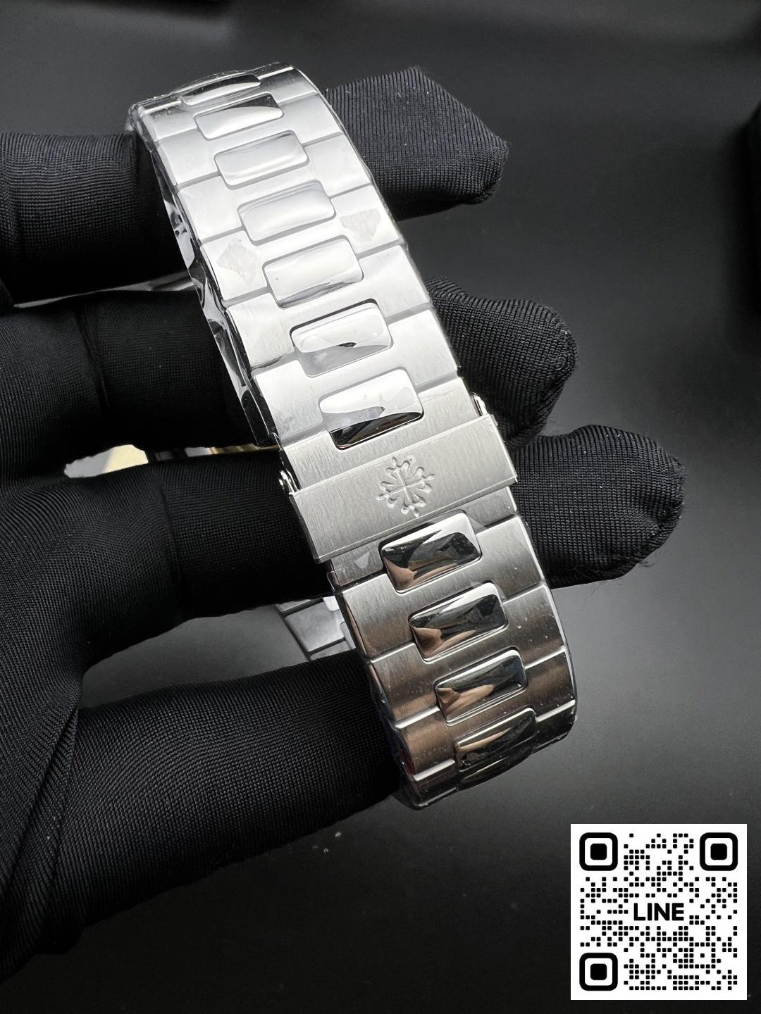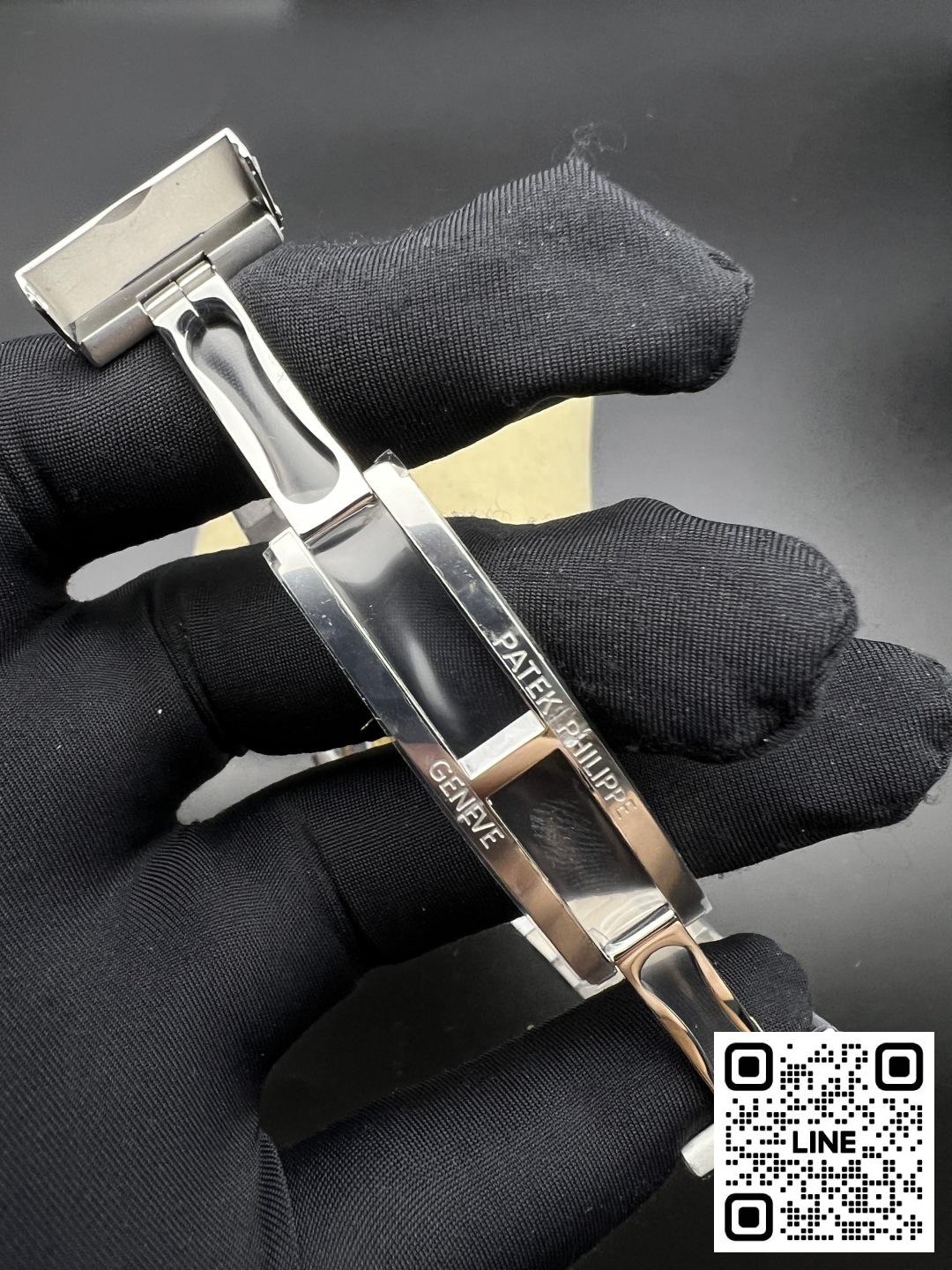 DDF工場のパテックフィリップ5711は、一目で忘れがたい本物の真髄を再現した逸品です。ダイヤルの横ストライプはクリアで細密、無欠陥です。バーインデックスは正品通りのチャンファー研磨を施した丸みのあるサイドエッジを持ち、日付フォントは太く立体的なデザインです。DDFの最大特徴は、市場唯一の正品と同じラグの4本弧状ポリッシュエッジが広いラインで、正面から本物の魅力を放つ点です。また、ケースの4つラグの角度も唯一の正確に再現しました。ケースのサテン仕上げは繊細で、ポリッシュは超高光沢がみえます。ケースとブレスレットの仕上げ工藝は一致し、テクスチャも統一しています。ムーブメントは丹東製の330ムーブメントで、自動ローターは26g加重の正品と一致で、パワーリザーブの十分です。