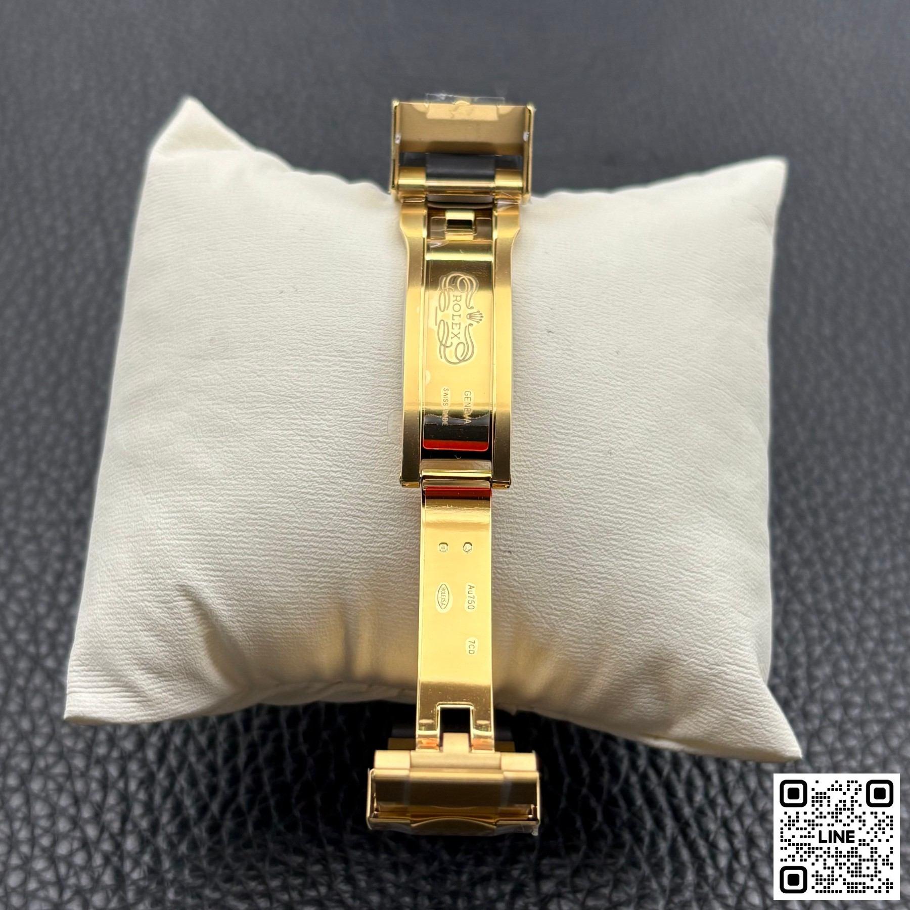 二、【CLEANベゼル】126518LN ベゼルの外側に加えたメタルリンクです。このようなデザインはセラミックベゼルをきちんと保護できるのみならず、フチ取りされたので、時計の輪郭もよりはっきりとなります。いいヴィンテージ感が漂っています。ベゼルの時刻が物理ガスデポジション技術を使用し、高温下でゴールド粉を文字に塗ることにより、時刻の太さを再現した他に、文字が変色しにくくなり、水と油に触れても色剝げと黒くなることを防げます。
