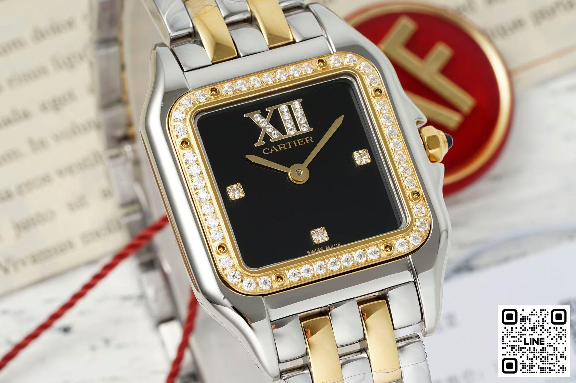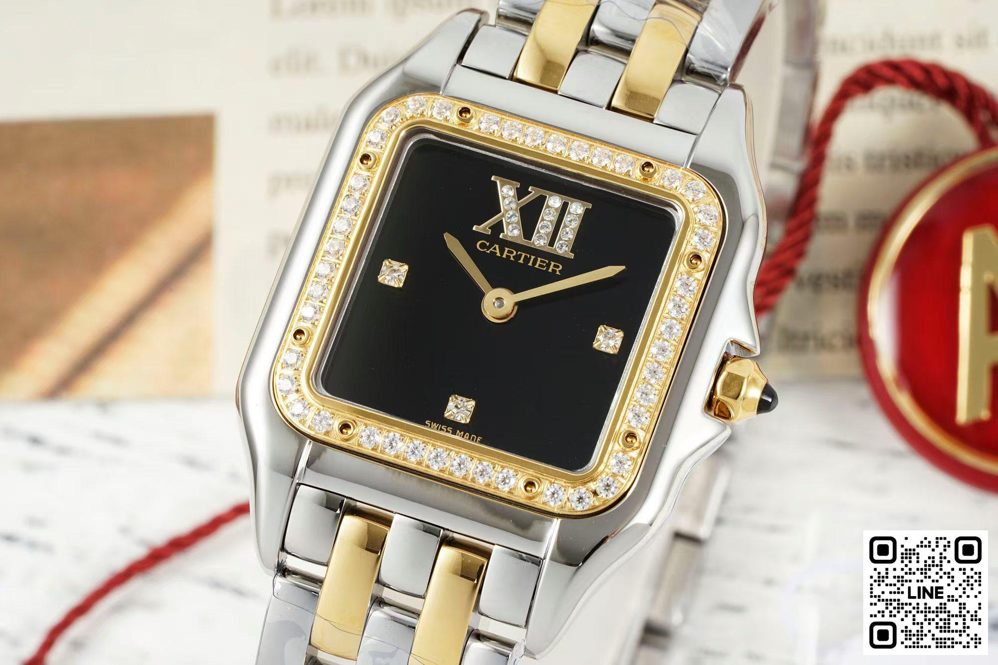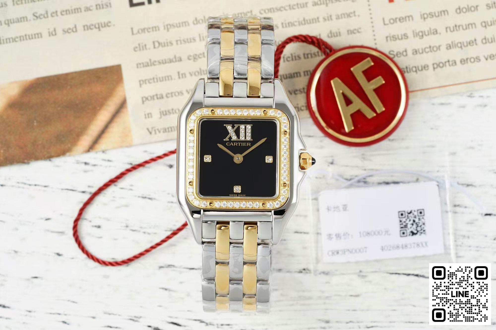 AF工場 カルティエ パンテール コンビイエローゴールド 27*37MM ダイヤ入れ ブラック スイスクオーツムーブメン 9