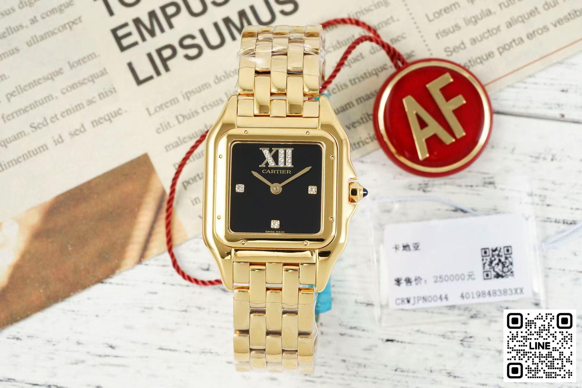 AF工場 カルティエ パンテール イエローゴールド 27*37MM ダイヤ入れ ブラック スイスクオーツムーブメント 9
