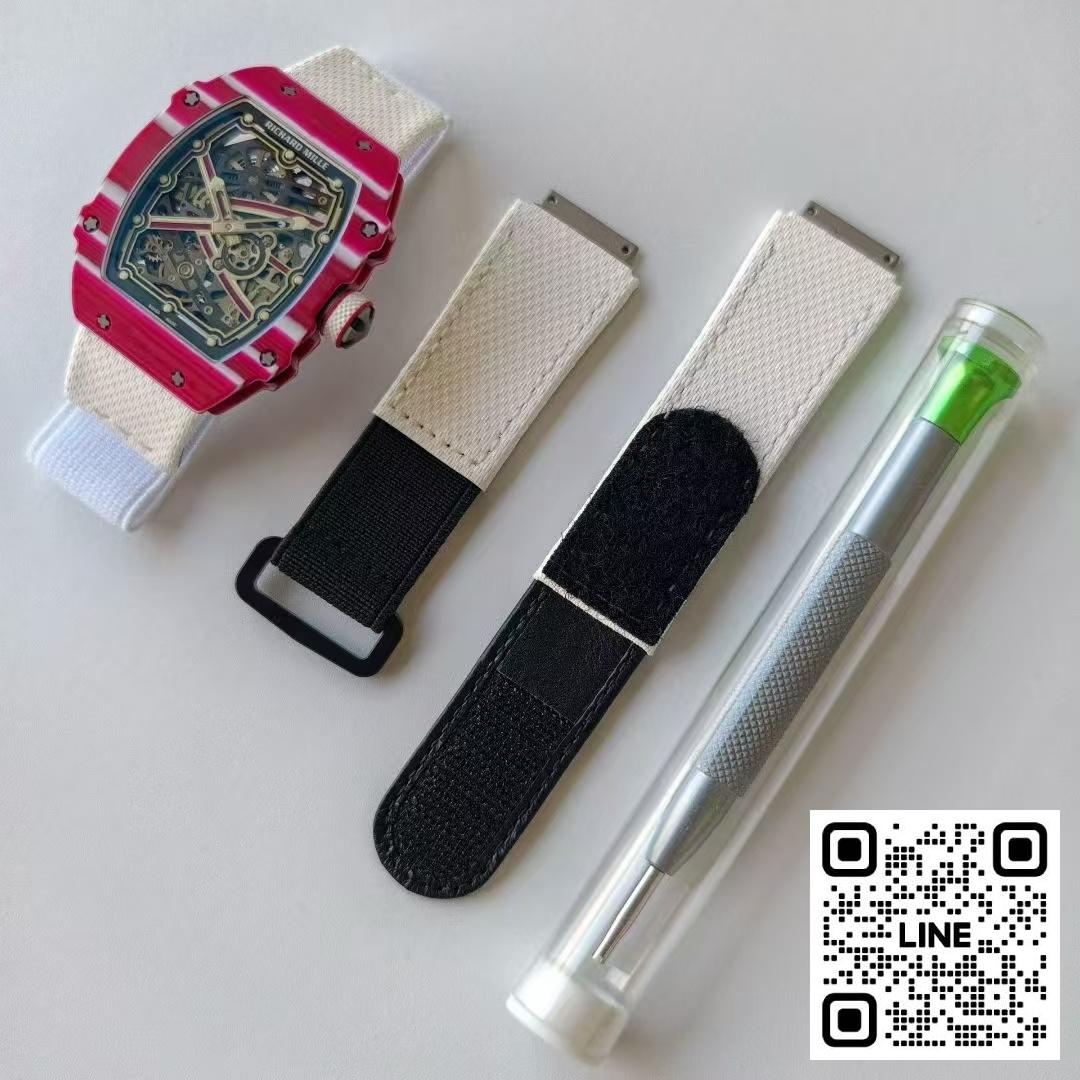軽さと薄さ、そして人間工学の面から、RM 67-01は、スポーツウォッチのベースモデルとして理想的でした。ウォッチラインに改良を加えてアスリートに合わせた様々な特色を強調しました。ベゼルとケースの4つのエクステンションを持つ設計は、リシャール・ミルのスポーツウォッチを象徴するだけでなく、ケース構造の強化にも役立っています。