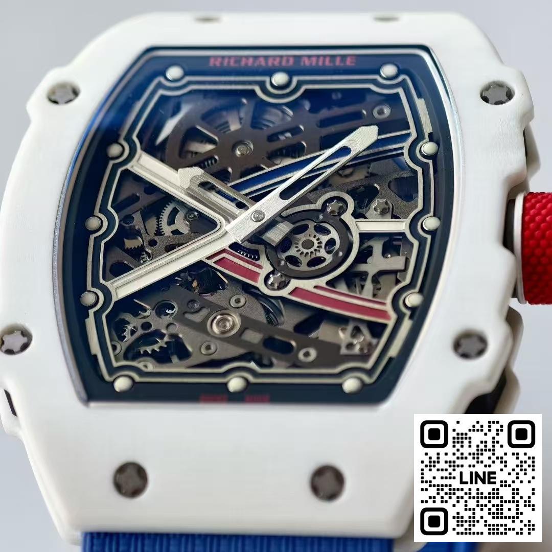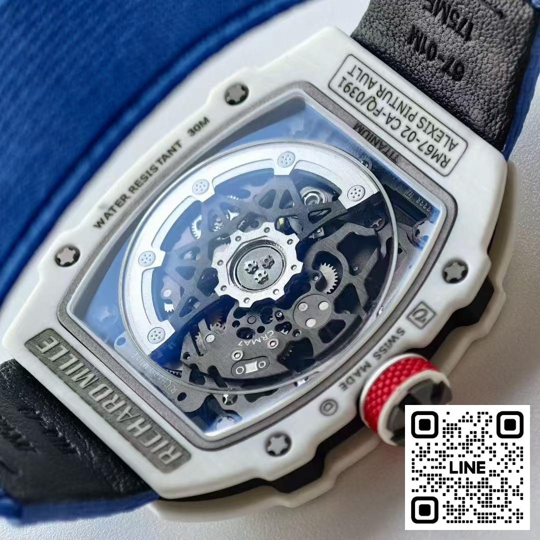 軽さと薄さ、そして人間工学の面から、RM 67-01は、スポーツウォッチのベースモデルとして理想的でした。ウォッチラインに改良を加えてアスリートに合わせた様々な特色を強調しました。ベゼルとケースの4つのエクステンションを持つ設計は、リシャール・ミルのスポーツウォッチを象徴するだけでなく、ケース構造の強化にも役立っています。