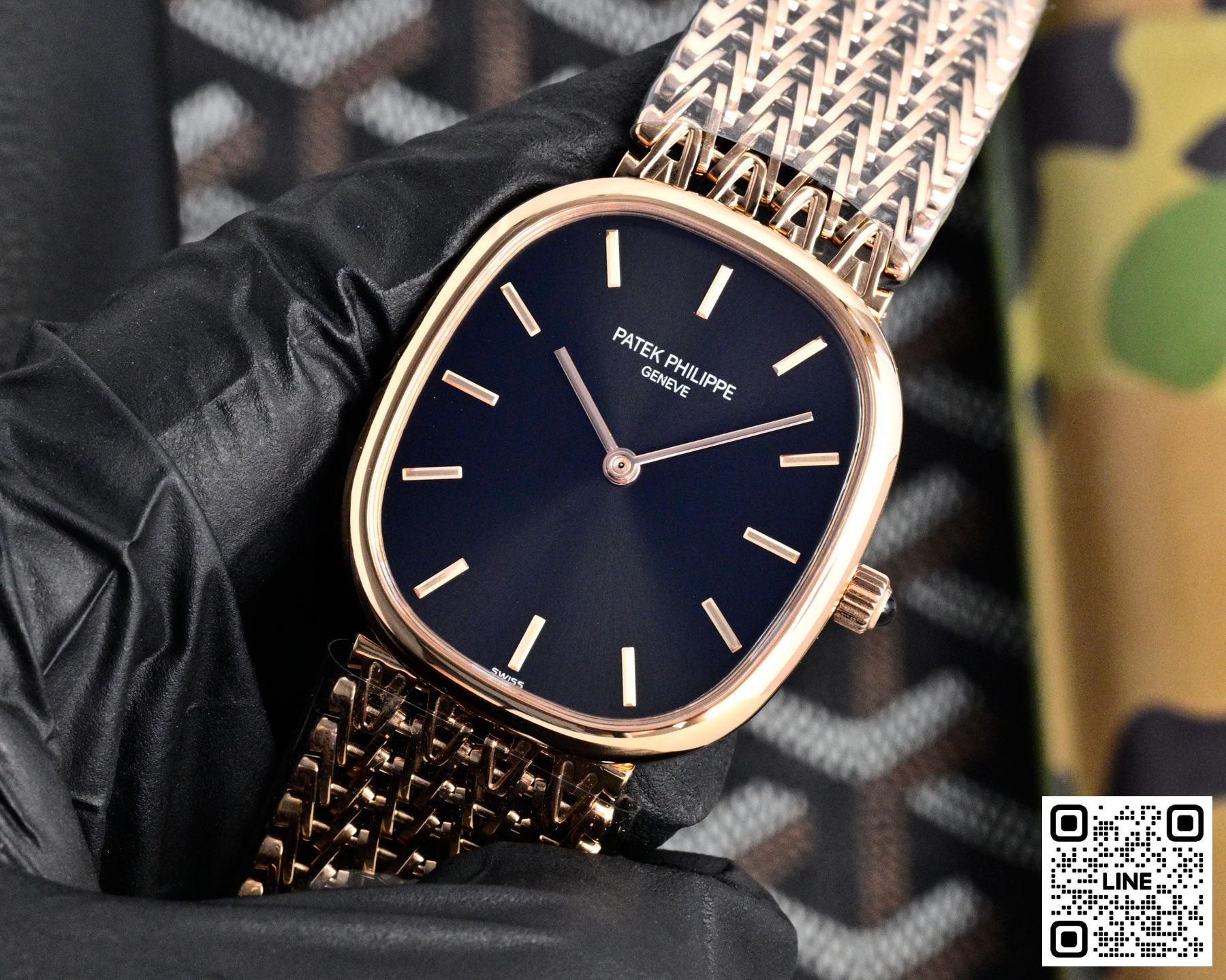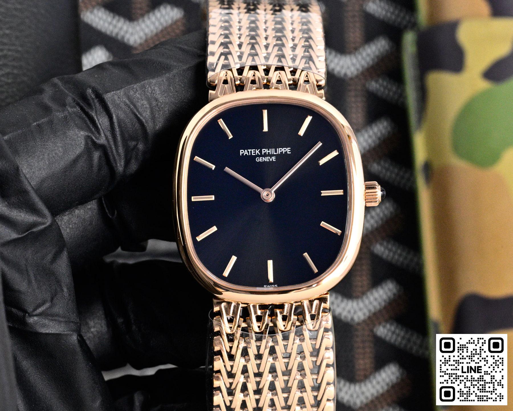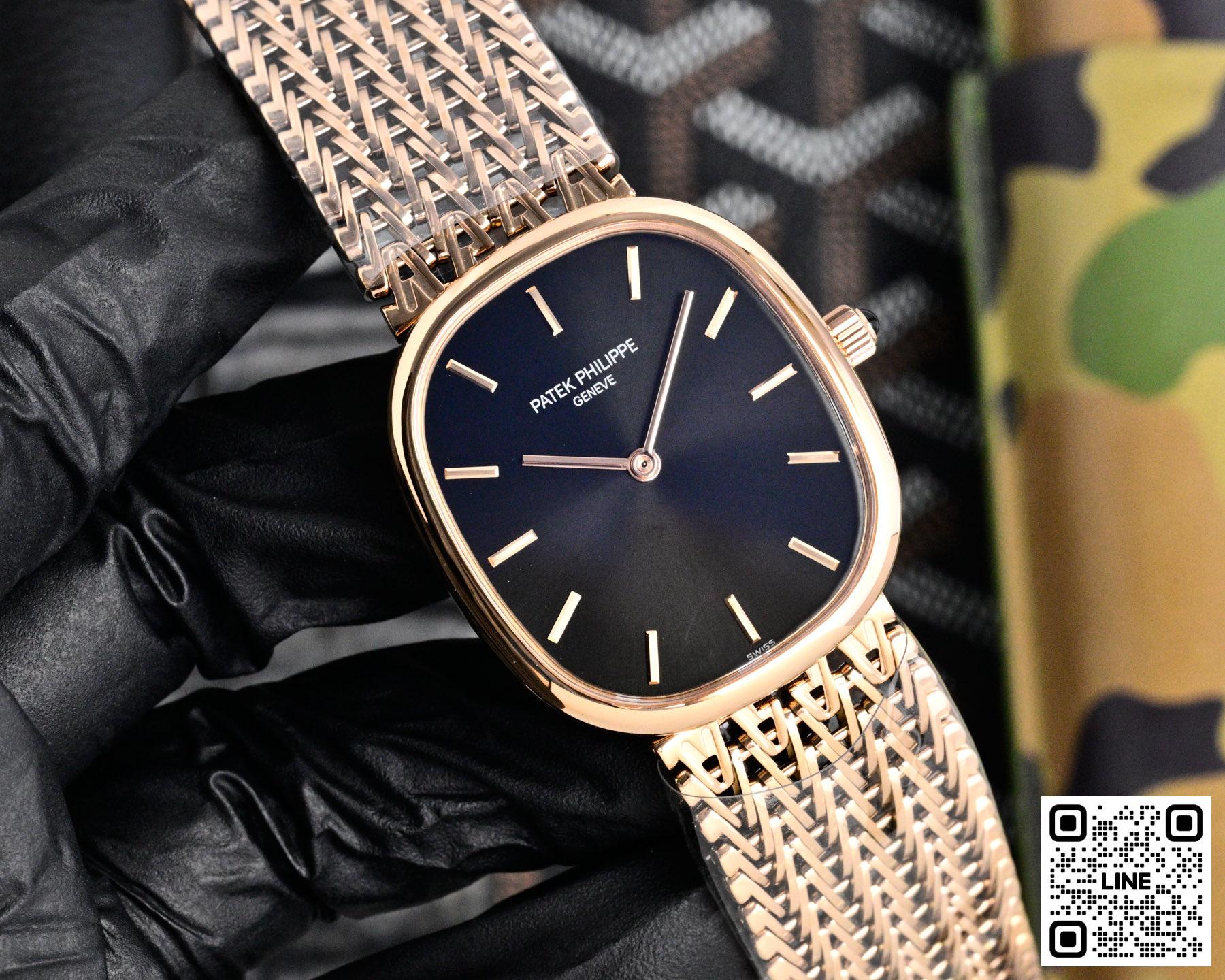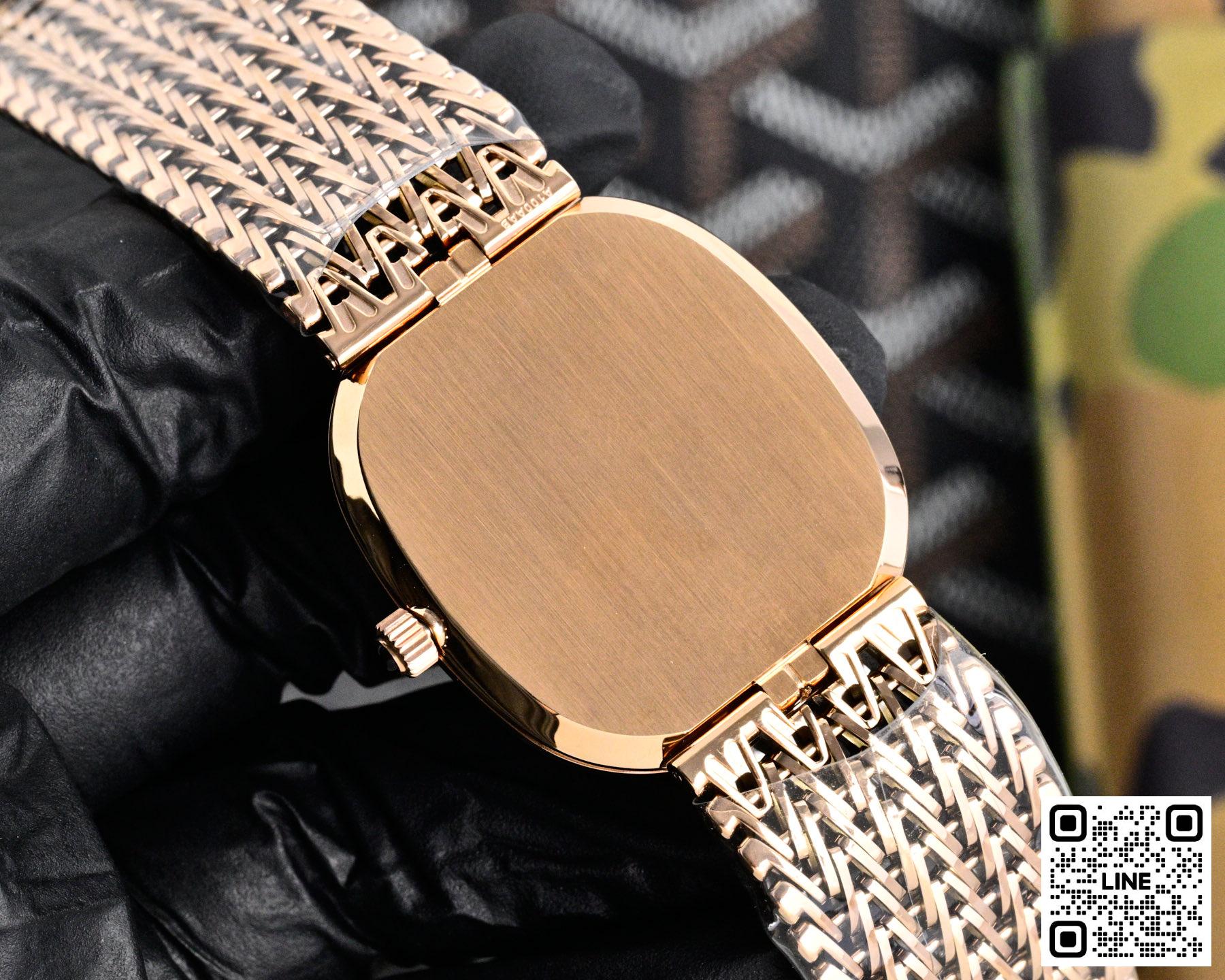 パテック フィリップ 5738は、ブランドを代表するトノー型ウォッチの傑作です。ローズゴールドが放つ温かな光沢と、深みのあるブラックダイヤルに配されたバーインデックスや細身の針が、極めてミニマルでエレガントな美学を体現しています。なめらかなケースラインが手首に心地よくフィットし、優れた装着感を約束します。